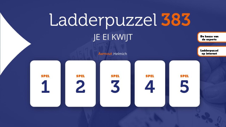 Lezers kunnen zich meten met een panel van experts. Door in te zenden, stijg je op de ladder. Dat doe je via www.bridge.nl/ladderpuzzels/. Daar vind je ook de stand van de ladder, de prijswinnaars en nieuwe opgaven.
