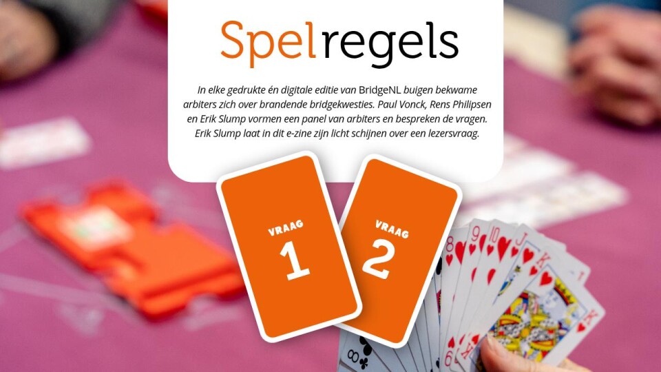 In elke gedrukte én digitale editie van BridgeNL buigen bekwame arbiters zich over brandende bridgekwesties. Paul Vonck, Rens Philipsen en Erik Slump vormen een panel van arbiters en bespreken de vragen. Erik Slump laat in dit e-zine zijn licht schijnen over een lezersvraag.