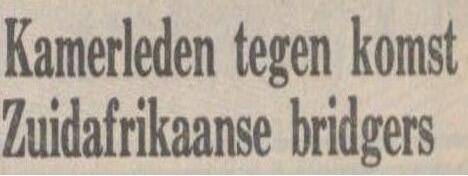 Kamerleden tegen komst Zuid-Afrikaanse bridgers, Trouw 28 juni 1980