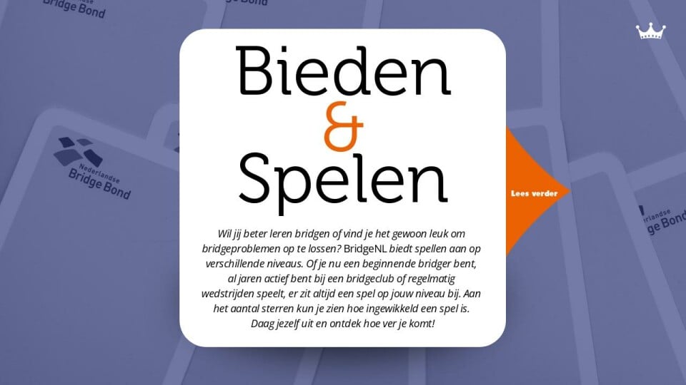 Wil jij beter leren bridgen of vind je het gewoon leuk om bridgeproblemen op te lossen? BridgeNL biedt spellen aan op verschillende niveaus. Of je nu een beginnende bridger bent, al jaren actief bent bij een bridgeclub of regelmatig wedstrijden speelt, er zit altijd een spel op jouw niveau bij. Aan het aantal sterren kun je zien hoe ingewikkeld een spel is. Daag jezelf uit en ontdek hoe ver je komt!
